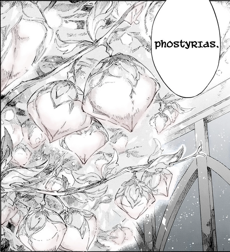 - Phostyrias (フォスティリアス; Fosutiriasu): Fictional: A non-toxic light red ornamental cultivar of Olin Maris created by a team of researchers in Lilias. It's name is so different from the plant it was derived from to help keep the public from associating it with the dangers of Olin Maris.